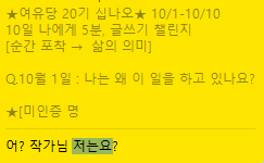 아, 물론 블로그에 쓰는 글 외에 글쓰기 작가 선생님이 새벽에 하나씩 주시는 질문에