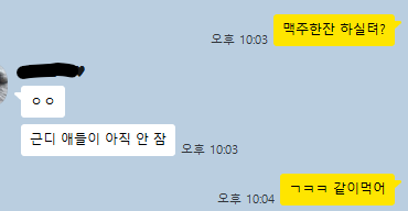 술자리 [거의 나만 먹기도 했는데]에, 당일 연락했는데,